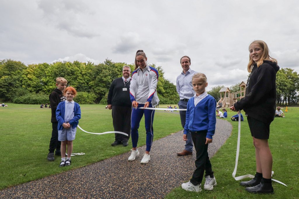To open the new Daily Mile track, Fieldform arranged for current Great Britain international athlete and Olympic hopeful, Holly Mills to officially cut the ribbon and answer a number of questions from over fifty pupils of all ages.