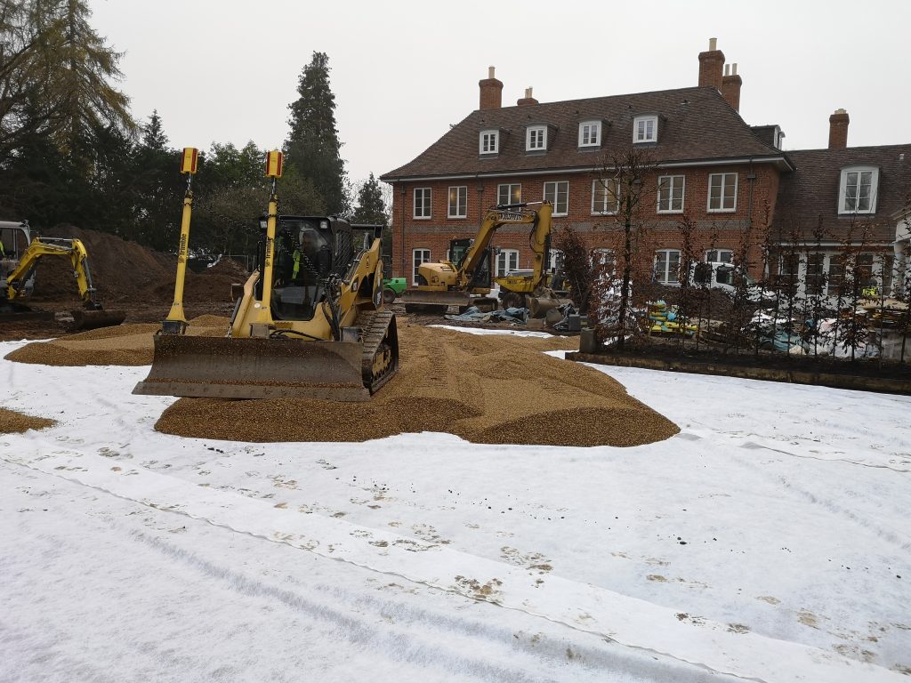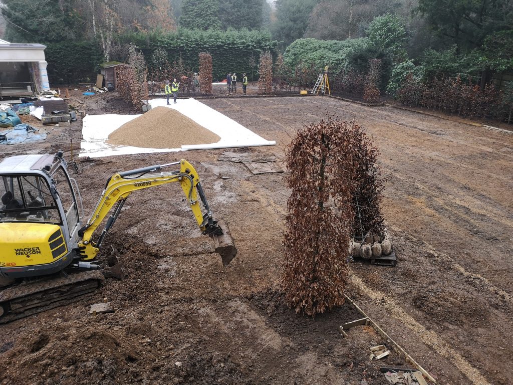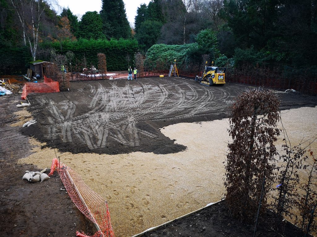 During the late Autumn of 2018, Fieldform were appointed to design and install a new grass tennis court for a prestigious, high-end new build development in Beaconsfield.