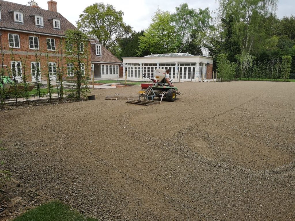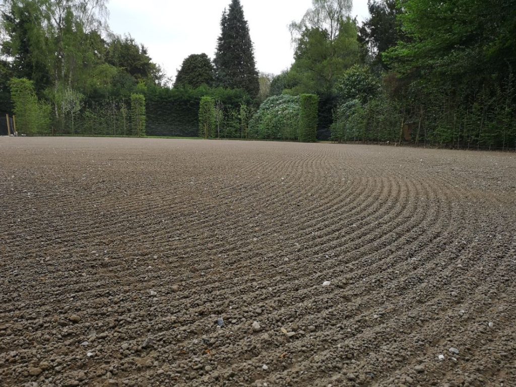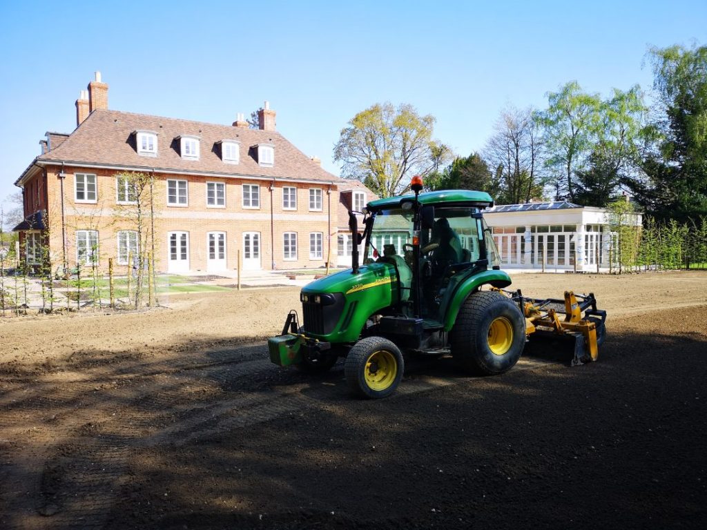 Following a considered scope review, Fieldform engaged directly with the client to fully understand their requirements and expectations to tailor the design, materials and programme accordingly. Fieldform assessed the ground and site condition and in turn produced a full specification and design proposal with bespoke loam mixes, drainage and seed cultivars. The new lawn is expected to act as a domestic grass tennis court and lawn, as well as endure the demands of a typical fine-turf lawn for relaxation, play and enjoyment.