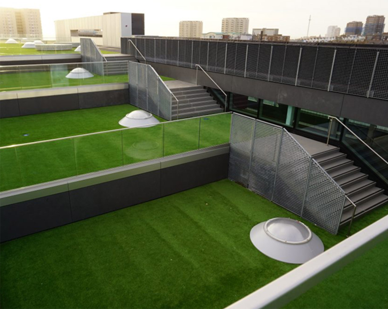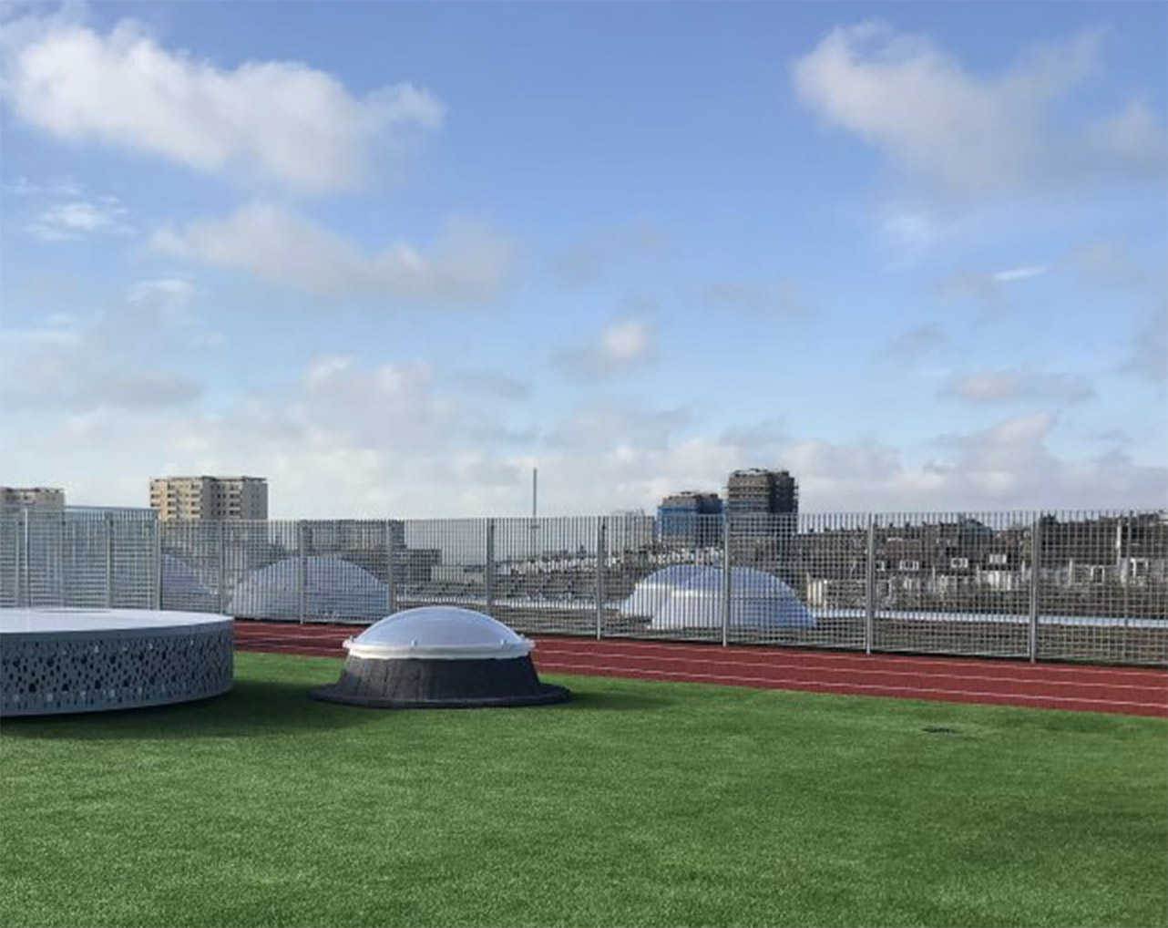 In recent years there has been a huge demand to maximise rooftop space within cities and large towns for sport and recreation. Fieldform can respond to this need by offering clients with a range of rooftop systems including fire tested sports facilities suitable for sprint tracks, multi-use games areas, small-sided football pitches and outdoor gyms. Surfacing options available include: