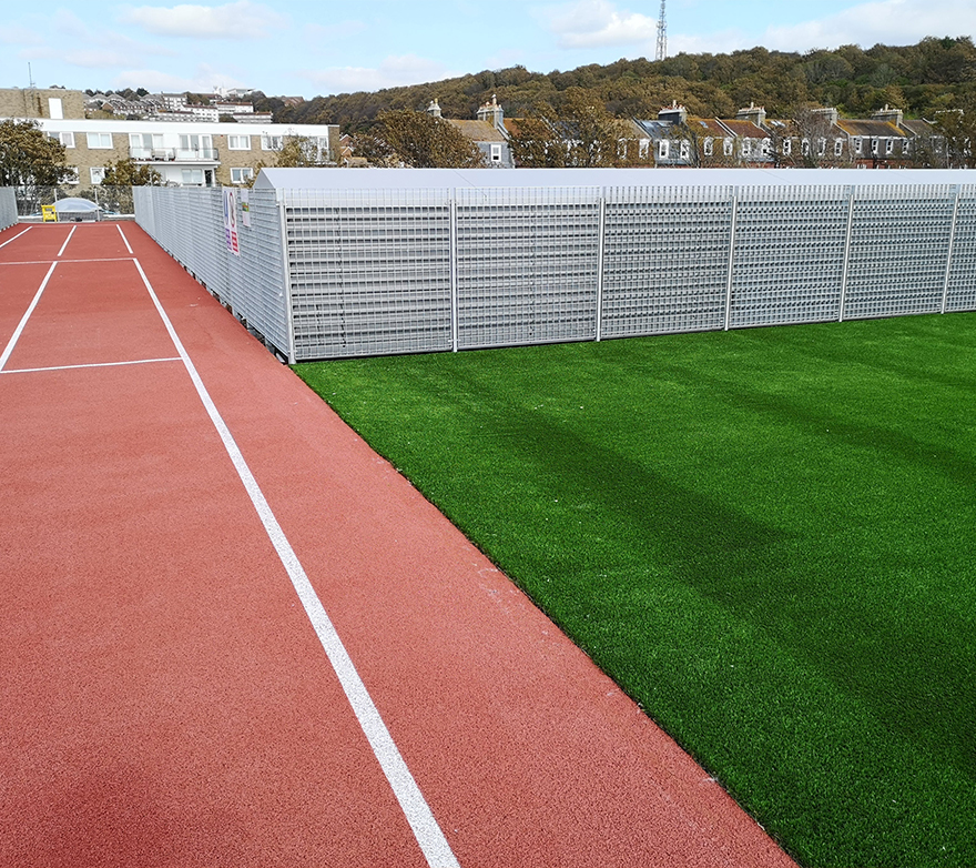 Our in-house team can work with clients to create a site-specific design that meets strict testing requirements including weight loading, fire spread, fire penetration, drainage and wind loading. Due to the rooftop setting we appreciate the importance of creating a self-contained space, by offering high quality fencing and catch netting we can offer clients with a complete solution from design through to practical completion. Please refer to the case studies below for full details of how we can transform an empty roof space into a purpose-built sports facility.